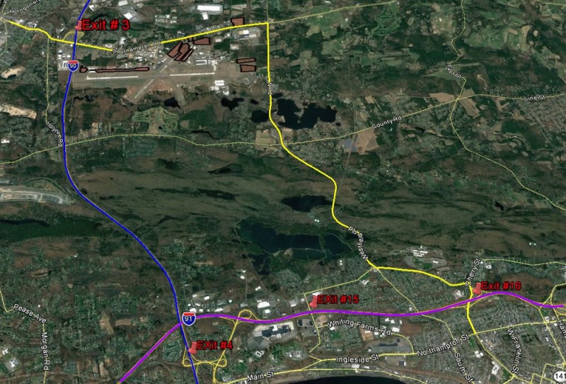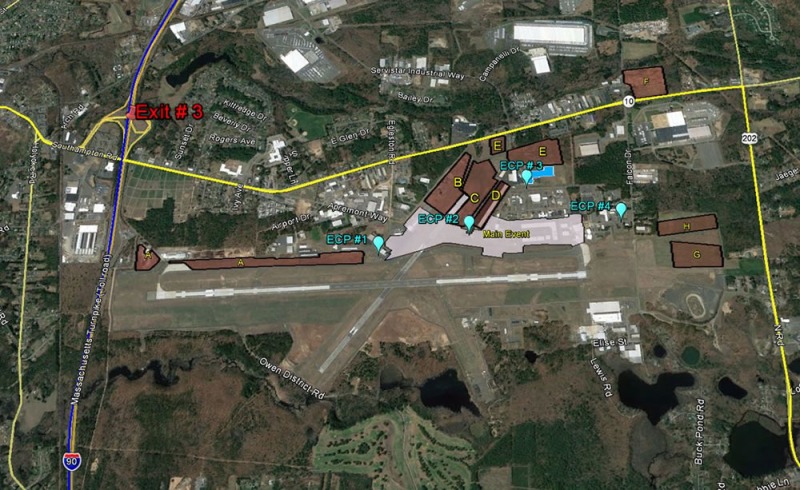 Exit 4 from I-90 Mass Pike to I-91 North. Take Exit 15 or Exit 16. Follow directions to Route 10/202 - Follow signs for Airshow Parking