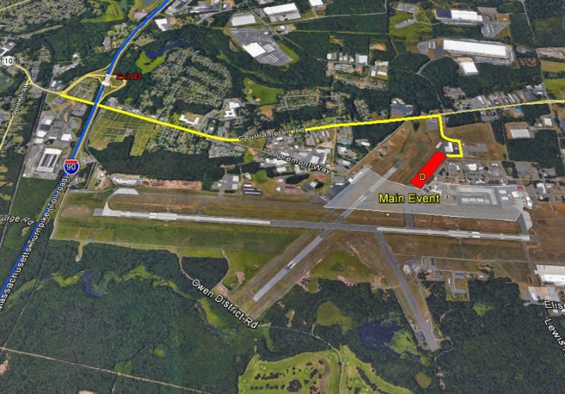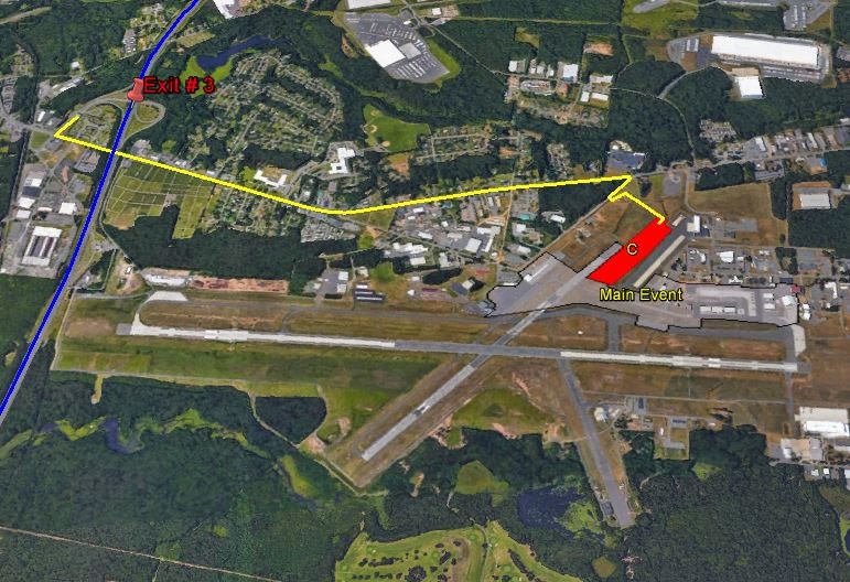 Exit 3 from I-90 Mass Pike. Turn left (North) onto Route 10/202 Southampton Road - Follow signs for Airshow Parking
